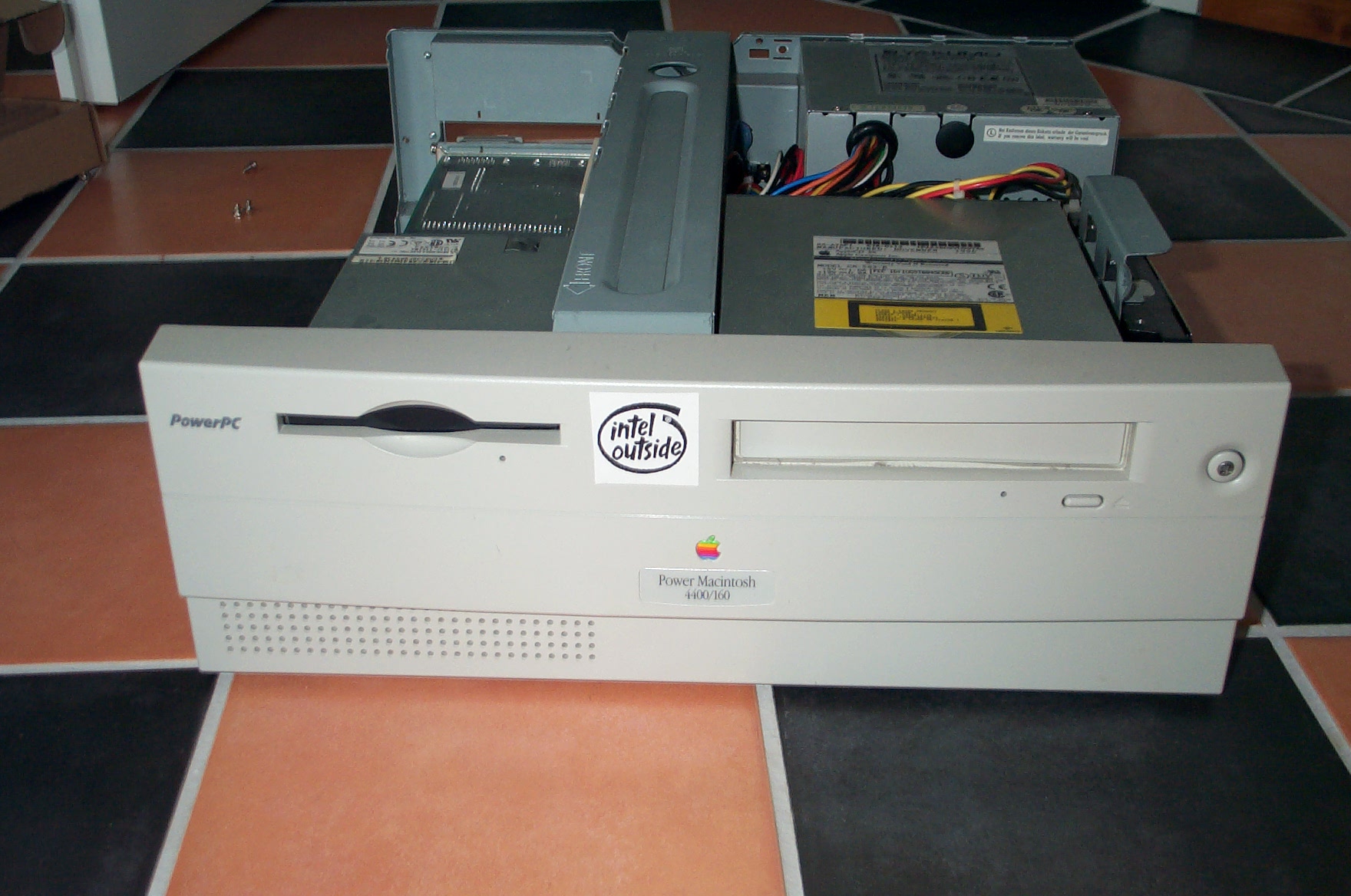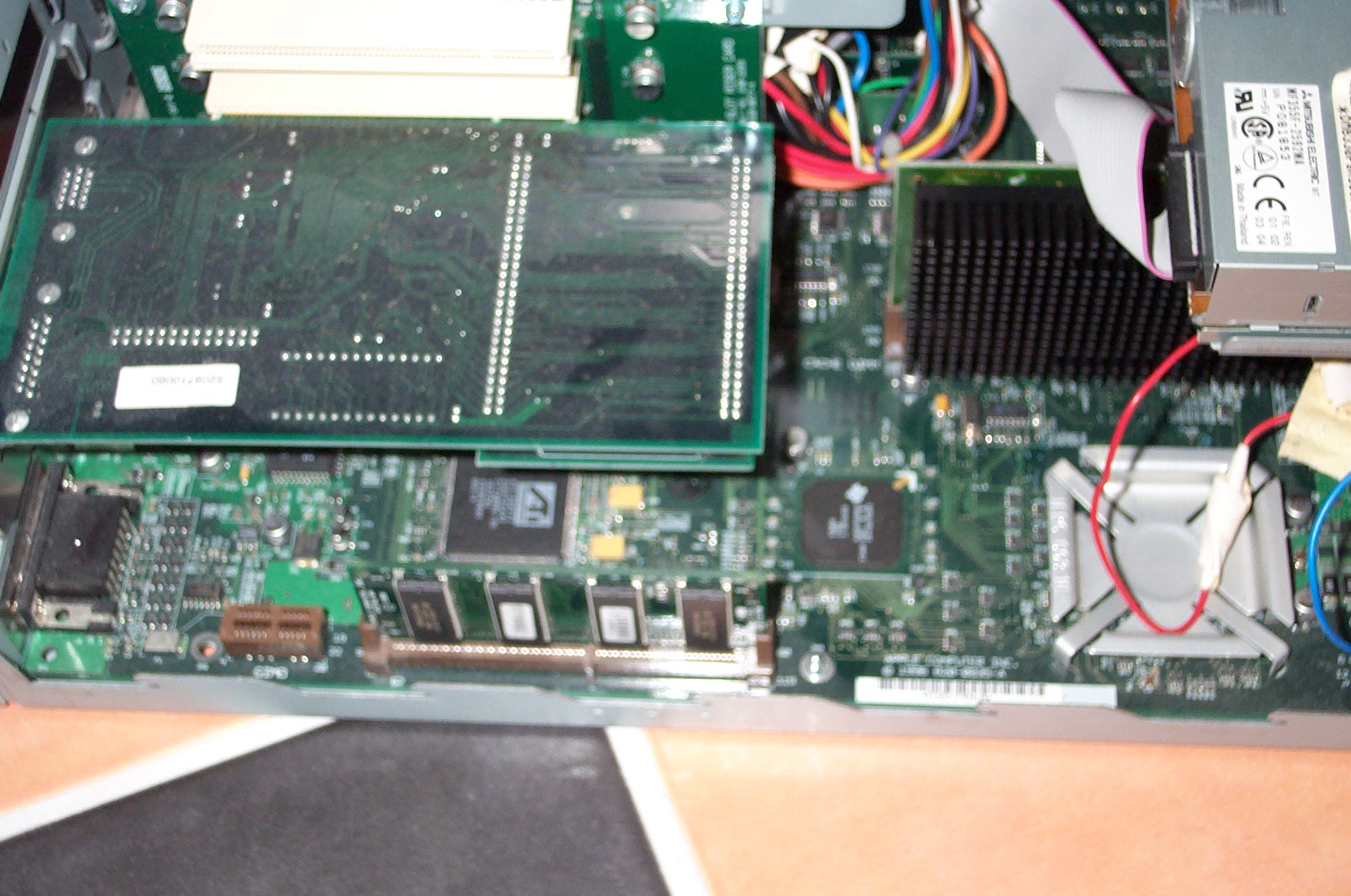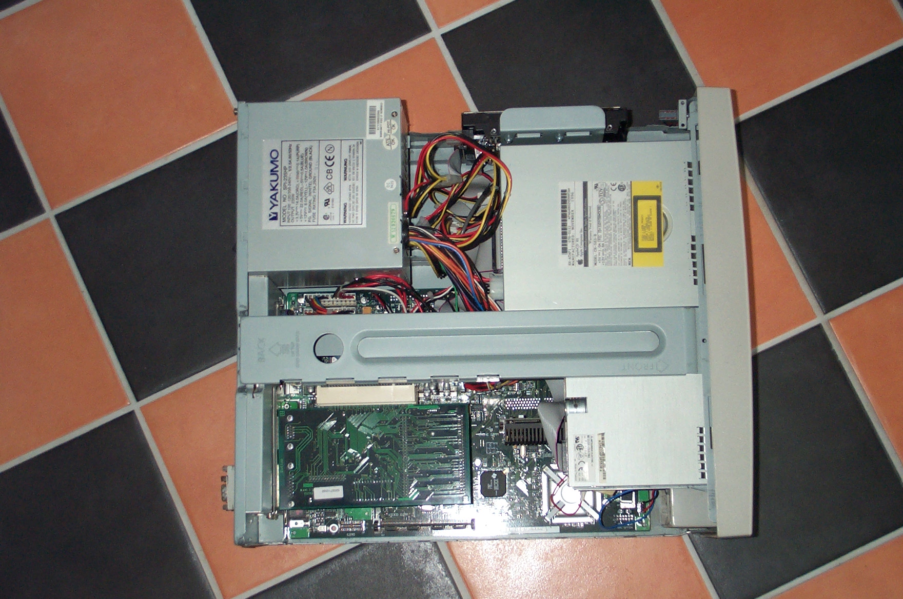 Lüfter tunning (Papst Lüfter) Standard ATX-Netzteil eingebaut, nachdem ein Blitzschlag das alte vernichtete... seitdem startet er recht ungern (wahrscheinlich die 3,3V Leitung zu schwach, da sehr viel bei diesem Rechner 3,3V benötigt) Apples erster lowcost PowerMac für damals knapp DM 2100.- |